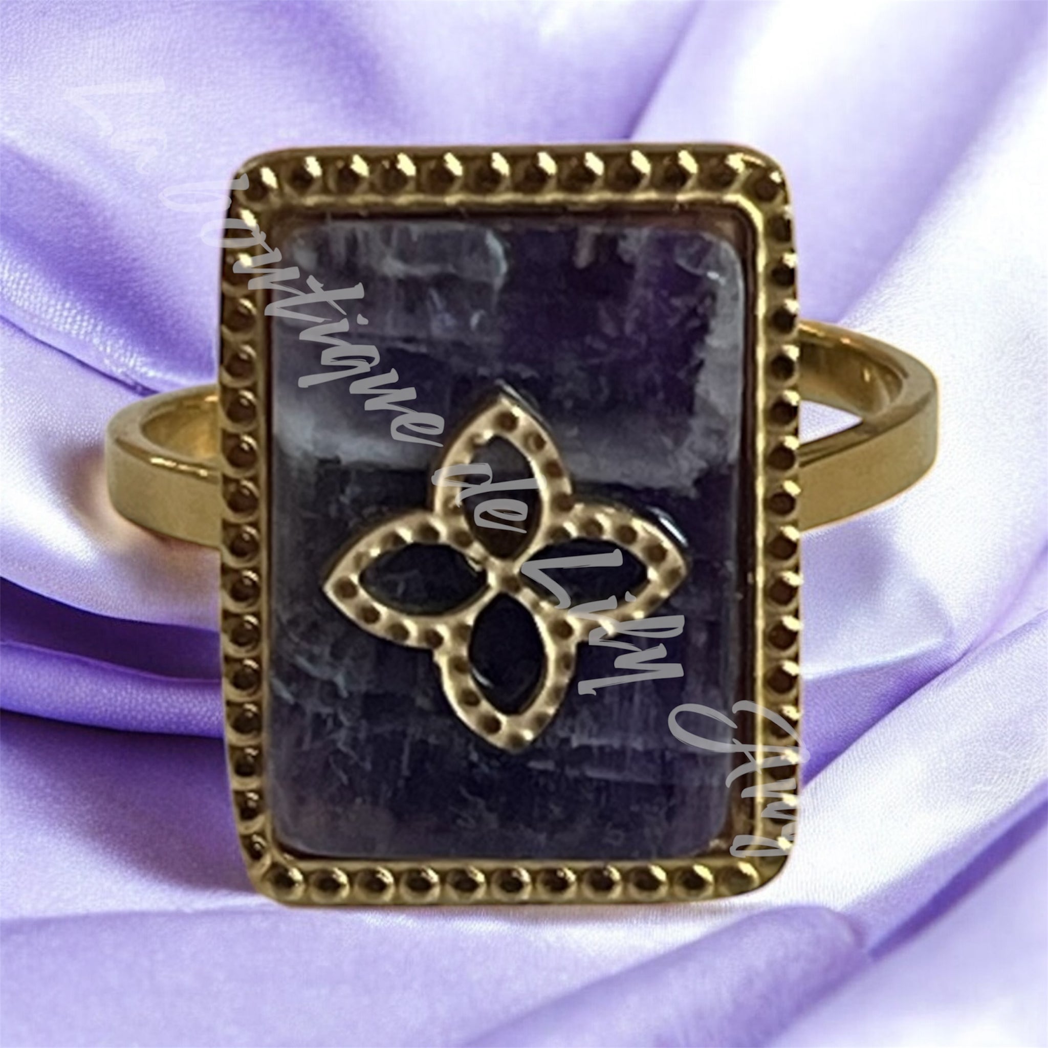 Craquez pour cette bague en acier inoxydable doré, élégante et moderne. Sur le devant, un petit rectangle délicat met en valeur une améthyste, pierre aux reflets violets envoûtants.