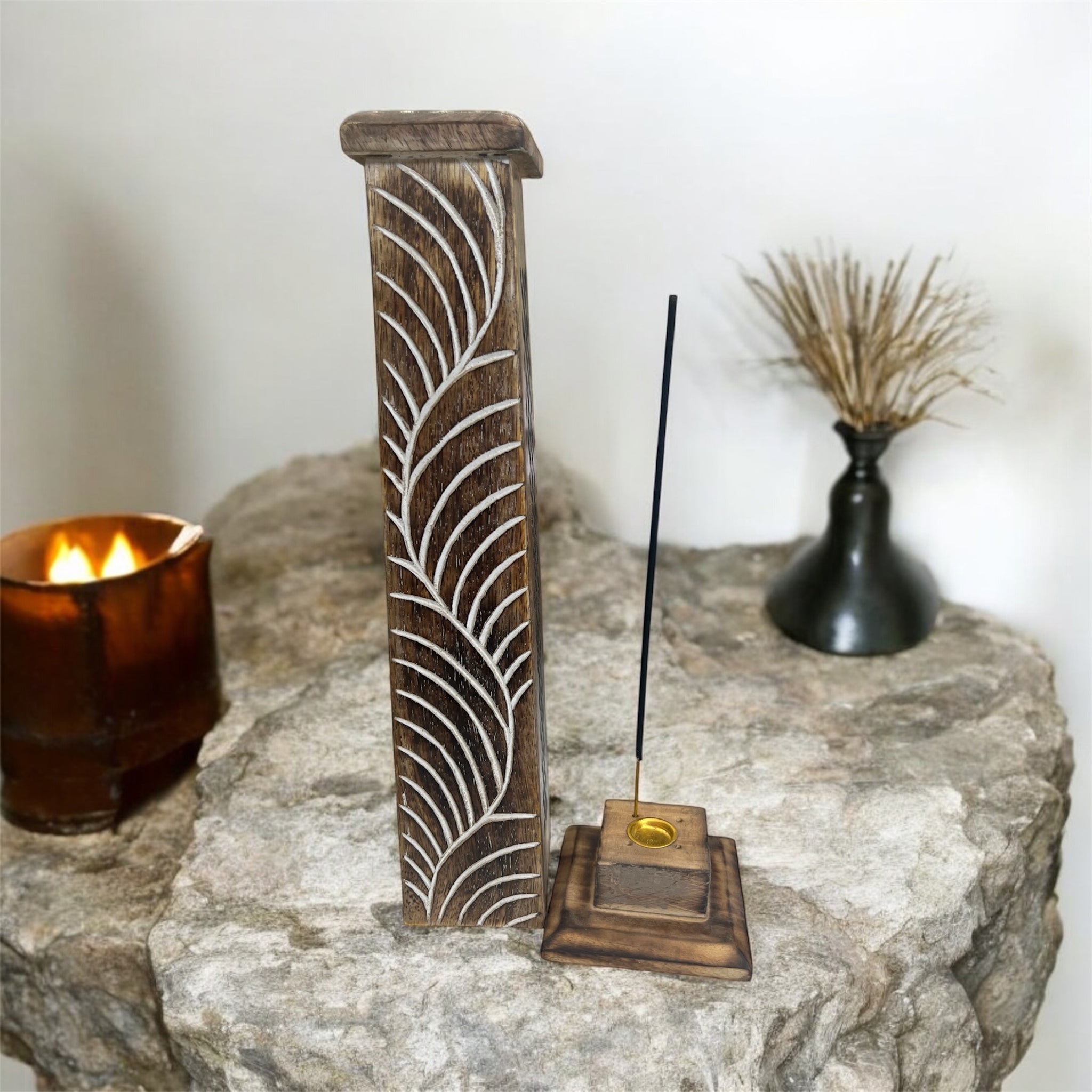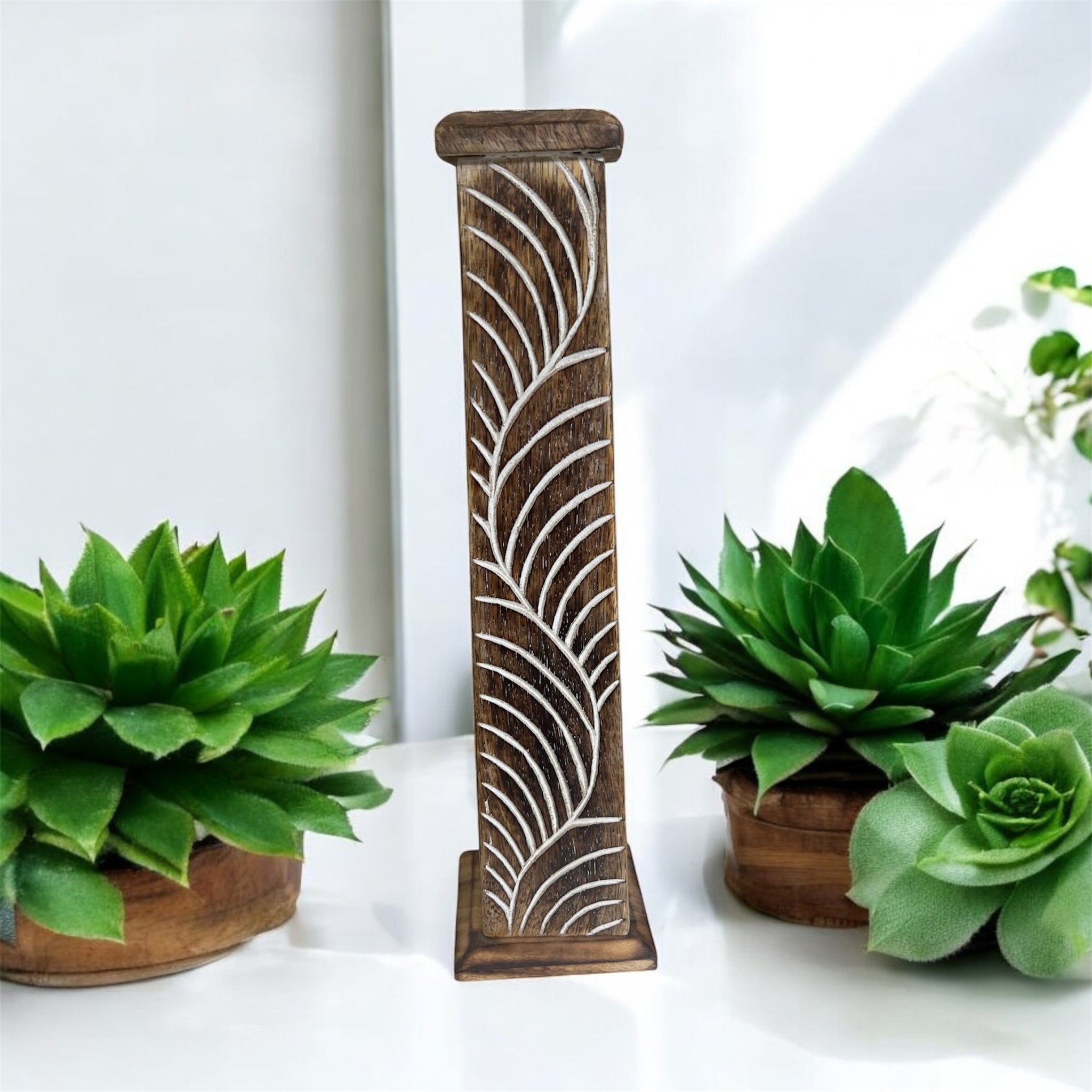 Ajoutez une touche de sérénité et d’harmonie à votre espace avec ce porte-encens en bois sculpté au motif Feuille, symbole d’énergie et d’équilibre.